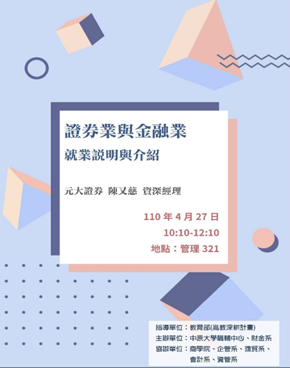 演講主題: 證劵業與金融業就業說明與介紹