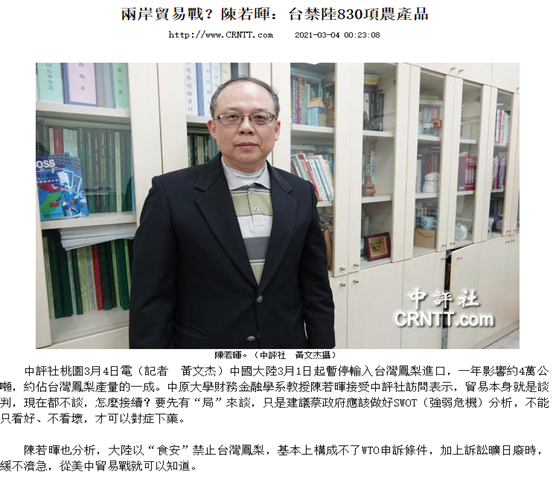 兩岸貿易戰? 陳若暉: 台禁陸830項農產品