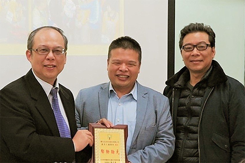 全球群眾募資與金融科技服務協會理事長、聚典資訊公司AI專案顧問、中原大學財務金融系教授陳若暉(左)、華元生活科技董事長黄揆元(中)、協會常務理事陳國書。 全球群眾募資與金融科技服務協會/提供