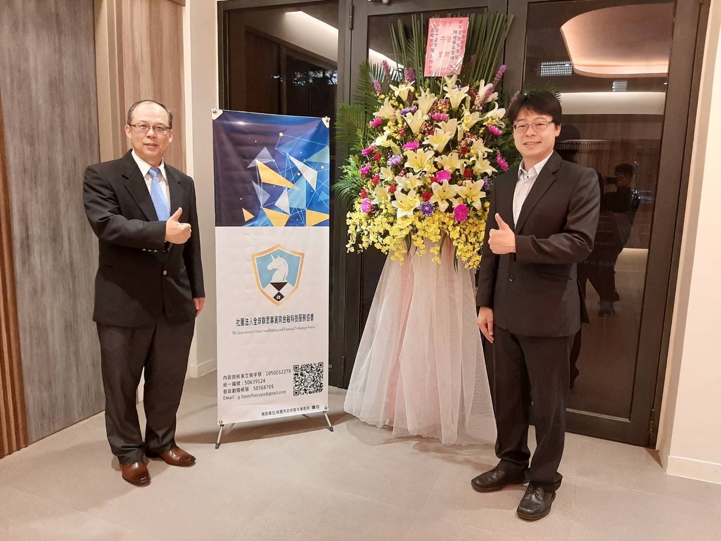 中原大學財務金融學系主任李彥賢(右)、全球群眾募資與金融科技服務協會理事長陳若暉(左)