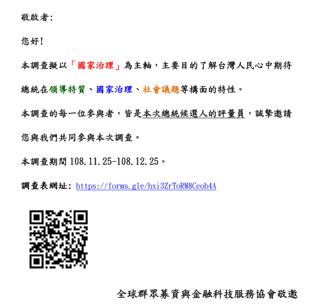 全球群眾募資與金融科技服務協會以「國家治理」為主軸所做首次問卷